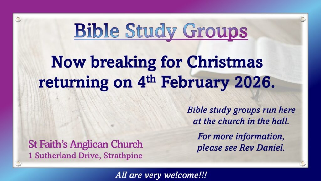 We are fortunate enough here are St Faith’s to be able to offer Bible Study Groups. We have study groups for Adults. Our adult Bible Study has 2 groups which runs on Wednesdays.